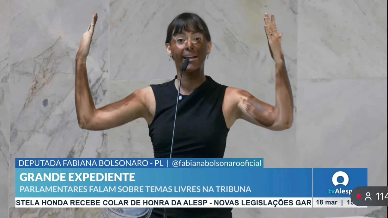A deputada estadual Fabiana Bolsonaro (PL), acusada de fazer blackface, se autodeclarou como parda nas eleições de 2022, apesar de ter se declarado como branca em 2020. Na quarta-feira (18), 18 deputados estaduais protocolaram representação no Conselho de Ética da Alesp pedindo apuração por possível quebra de decoro parlamentar por ter pintado o rosto com tinta preta na tribuna.