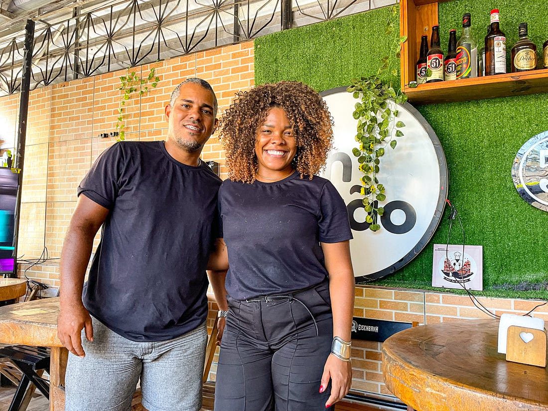 Cleisson Carvalho e Jamille Borges são donos do bar e restaurante “Oh Pirão Prime”, localizado no bairro Cabula, em Salvador – Bruna Rocha / Entre Becos 2026