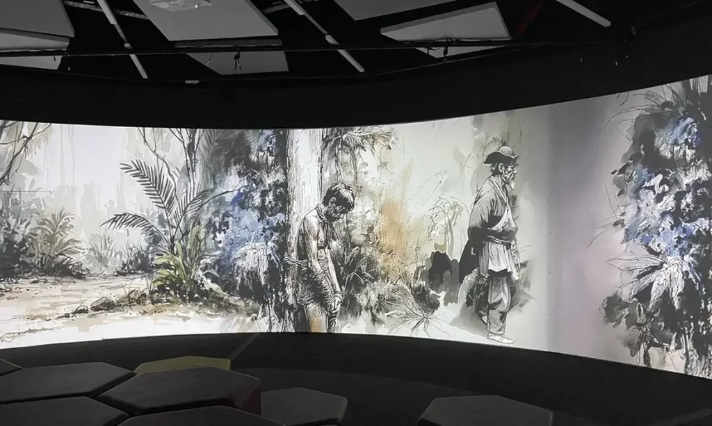 A exposição “Amazônia Imersiva: narrativas indígens”, aberta nessa segunda-feira (27) no Centro de Realidade Estendida da Pontifícia Universidade Católica do Paraná (PUCPR), mostra a história e vivências do povo indígena Mura, originário da Amazônia. O projeto é gratuito e foi idealizado por Humberto Salgueiro, ex-aluno da Pontifícia Universidade Católica do Paraná (PUCPR), com criação dos alumnis da instituição de ensino, os músicos e irmãos Darlison e Lucas Meireles, descendentes do povo Mura que vivem no norte do Paraná.
