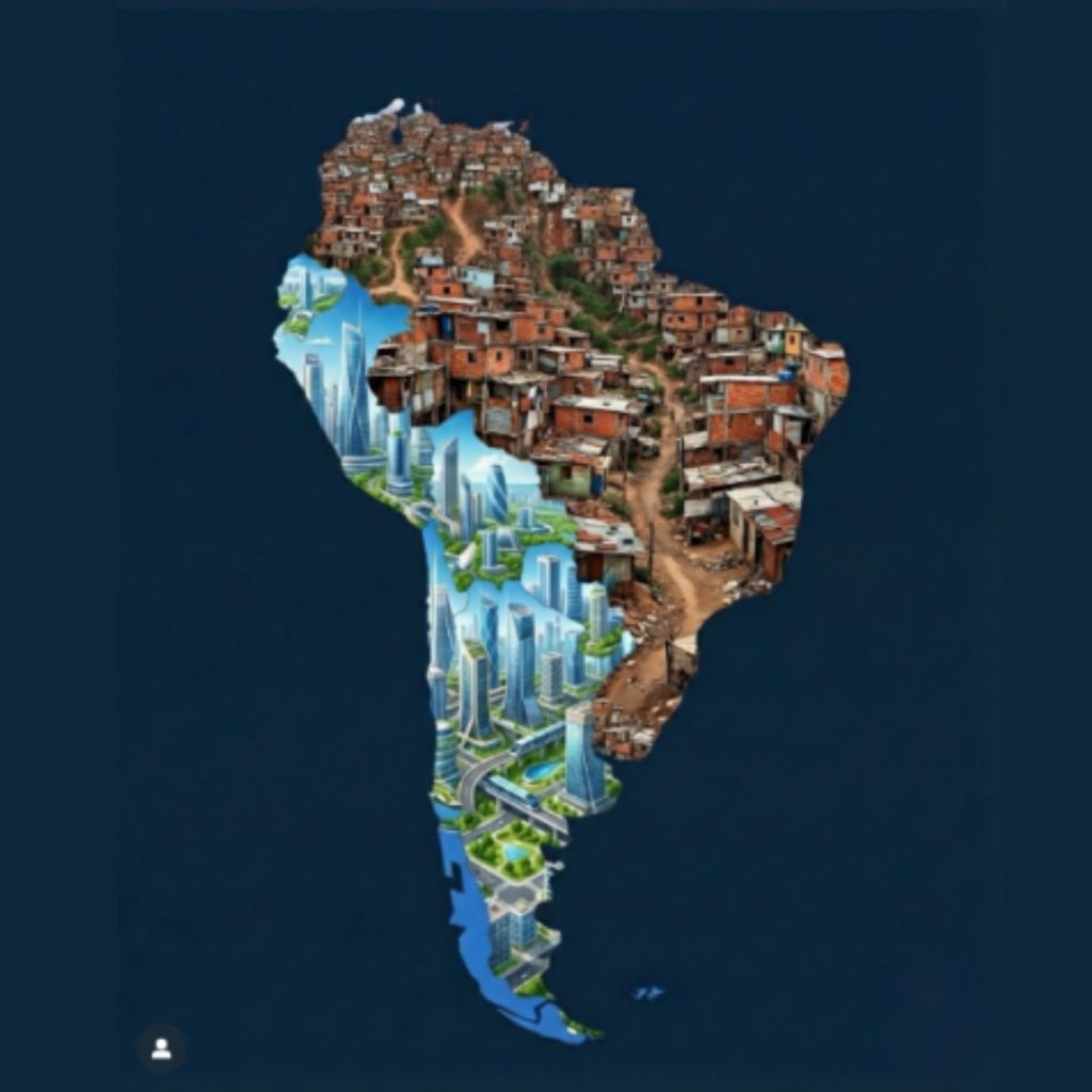 O presidente da Argentina, Javier Milei, voltou a gerar polêmica nesta segunda-feira (15) ao compartilhar em seu perfil oficial no Instagram uma imagem que retrata países da América do Sul sob uma divisão ideológica: na ilustração, o Brasil aparece como uma grande favela, enquanto a Argentina surge representada por uma cidade futurista e desenvolvida. A comparação foi amplamente criticada por internautas e analistas políticos, sobretudo no Brasil.